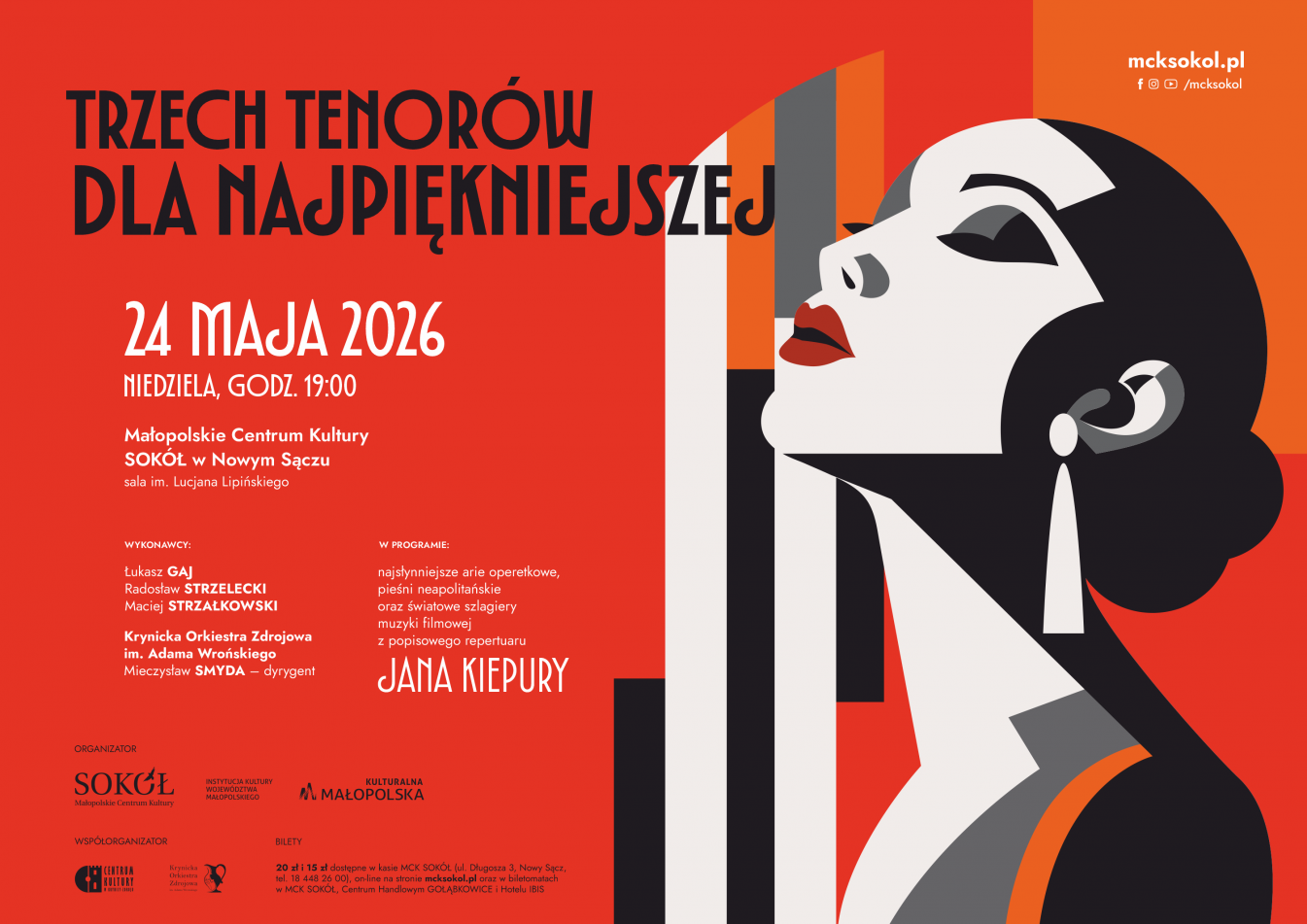 Na scenie zaprezentuje się trio znakomitych solistów: Łukasz Gaj, Radosław Strzelecki oraz Maciej Strzałkowski. Artystom towarzyszyć będzie Krynicka Orkiestra Zdrojowa im. Adama Wrońskiego, którą poprowadzi Mieczysław Smyda.